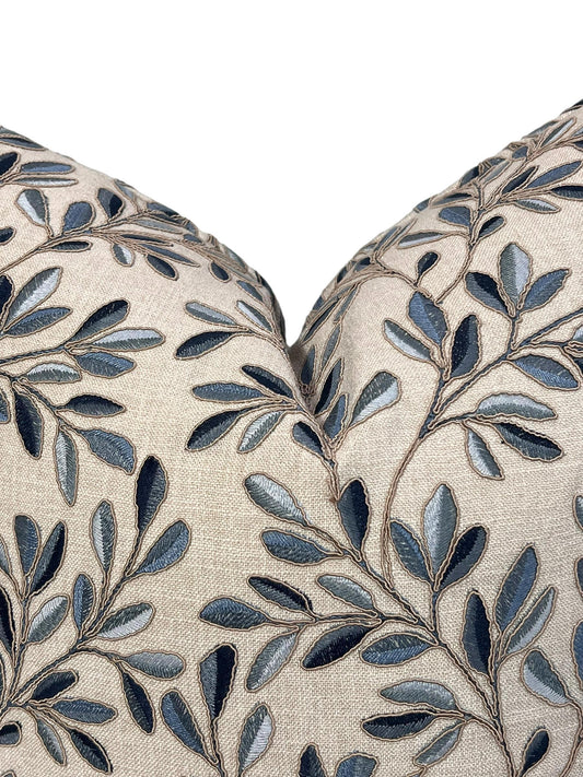 Leaf Embroidery Linen Pillow Cover, Neutral Toned Pillow Cover, Botanical Embroidered Cushion Cover, Linen Decorative Pillow Cover