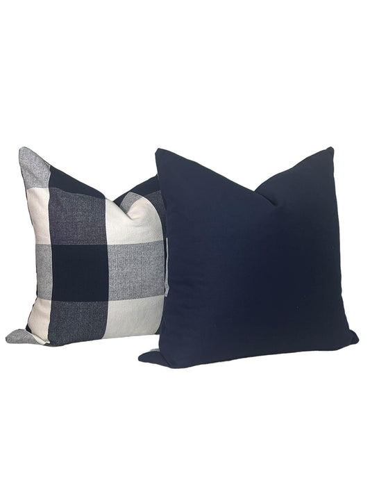 Navy and White Buffalo Check Pillow Cover, Blue and White Plaid Throw Pillow, Navy Big Check Pillow, Blue and White Checkered Pillow