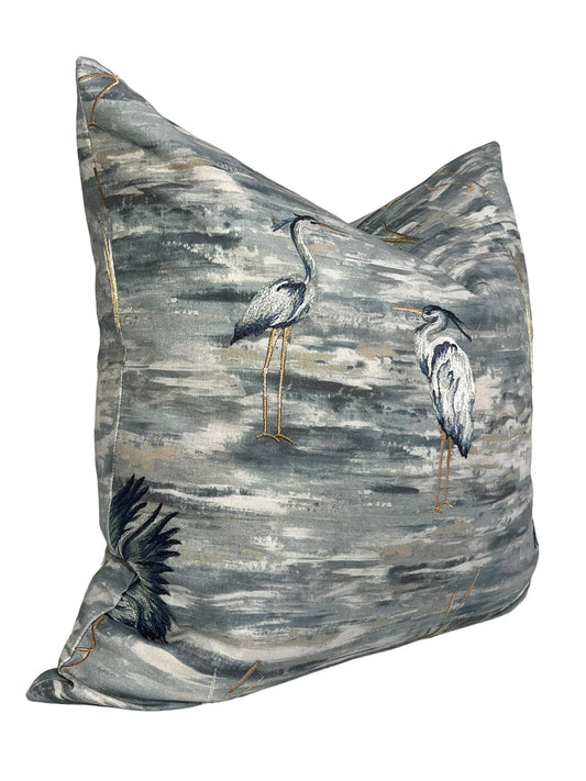 Heron Print Pillow Cover, Coastal Bird Cushion, Beach House Decor, Watercolor Heron Pillow, Coastal Living Cushion, Nautical Bird Print