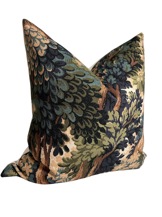 Moody Forest Pillow, Forest Tapestry Pillow, Into the Woods Printed Cotton Pillow, Forest Green Verdure, Jewel Tone Pillow, Somerset Woods