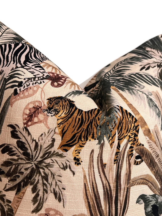 Jungle Safari Pillow Cover, Tropical Wildlife Cushion, Exotic Jungle Throw Pillow, Animal Print Cushion Cover, Safari Decor Pillow Cover