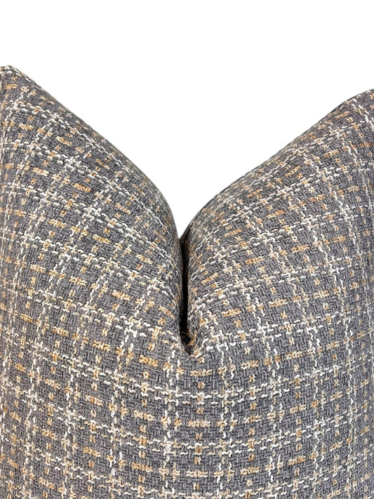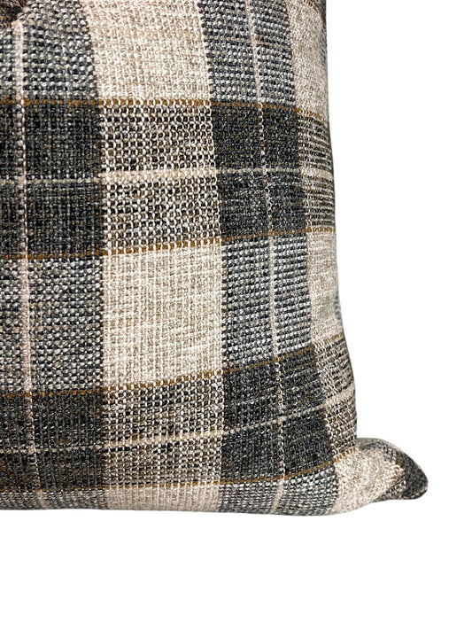 Graphite Checkered Throw Pillow, Plaid Pattern Pillow, Brown White Plaid Cushion, Basketweave Woven Pillow, Neutral Textured Pillow Cover