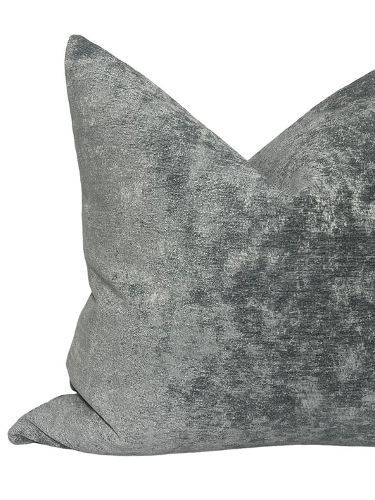 Silver Velvet Pillow Cover, Gray Distressed Velvet Pillow Cover, Metallic Silver Gray Pillow Cover, Textured Gray and White Pillow Cover