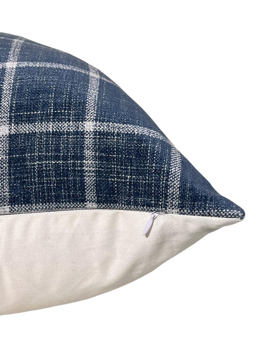 Rustic Plaid Throw Pillow, Navy Blue Plaid Pillow, Farmhouse Check Cushion, Country Style Plaid Cushion, Handmade Farmhouse Pillow Cover