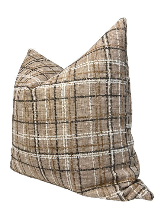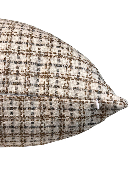 Papyrus Checkered Throw Pillow, Plaid Pattern Pillow, Brown White Plaid Cushion, Basketweave Woven Pillow, Neutral Textured Pillow Cover