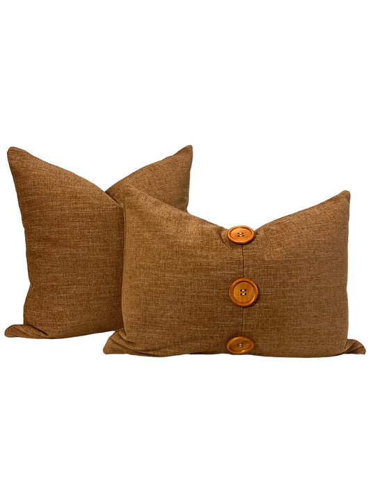 Rustic Brown Pillow Cover, Cozy Farmhouse Pillow Cover, Cozy Farmhouse Pillow Cover, Button Accent Cushion, Brown Button Pillow
