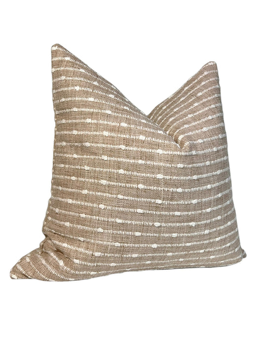 Tan Deja vu Pillow Cover, Woven Stripped pillow, Striped Boho Pillow Cover, Raised Dotted Stripe Cushion,