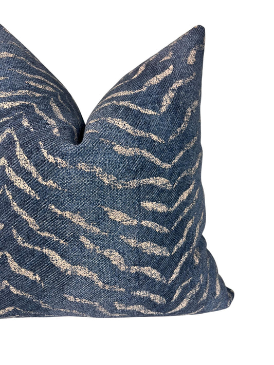 Ruolan Persian Blue Zebra Print Cushion Cover, Navy Textured Zebra Print Cover, Kaufman Throw Pillow Cover, Wildlife Inspired Cushion
