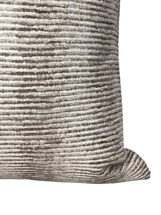 Plush Chenille Pillow Cover, Taupe and Ivory Striped Cushion, Modern Luxe Decor, Neutral Cut Velvet Pillow, Soft Ribbed Throw Pillow Cover