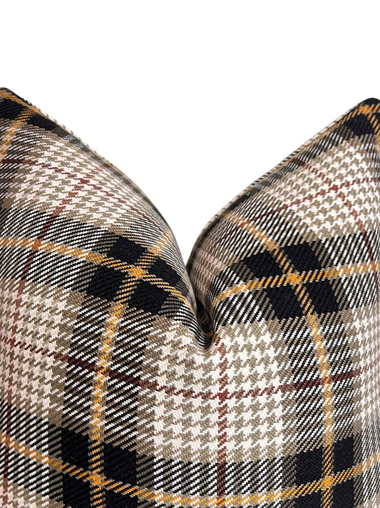 Plaid Wool Pillow Cover | Tartan Check Throw Pillow | Rustic Farmhouse Cushion | Brown-Black Plaid Pillow | Houndstooth Cushion | Fall Decor
